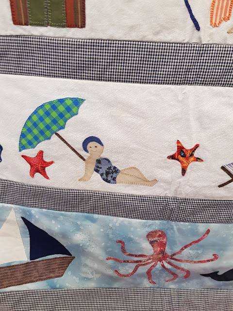 It tells the story of when she lived in Victor Harbor. It represents home, animals, garden, beach houses, bathing beauties and sea life.