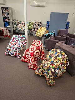 This month we had a visit from Robyn and Vicki representing the Mary Potter Hospice Foundation (part of Calvary Hospital). They gave a talk on how valuable the donated quilts are to the comfort of patients and families and also collected an amazing 75 quilts made with love by both Woodpatch and Piccadilly Quilters to distribute to patients in hospice care.
